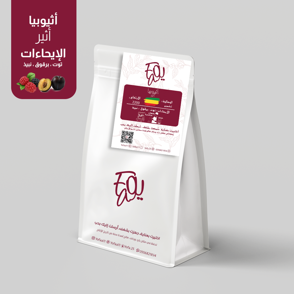من مرتفعات أثيوبيا الخصبة وعلى ارتفاع 2200 متر، تأتيكم أثير، قهوة مختصة معالجة بالتجفيف الطبيعي، تمنحك مزيجًا رائعًا من الإيحاءات الفاكهية الجريئة والنكهات الغنية.